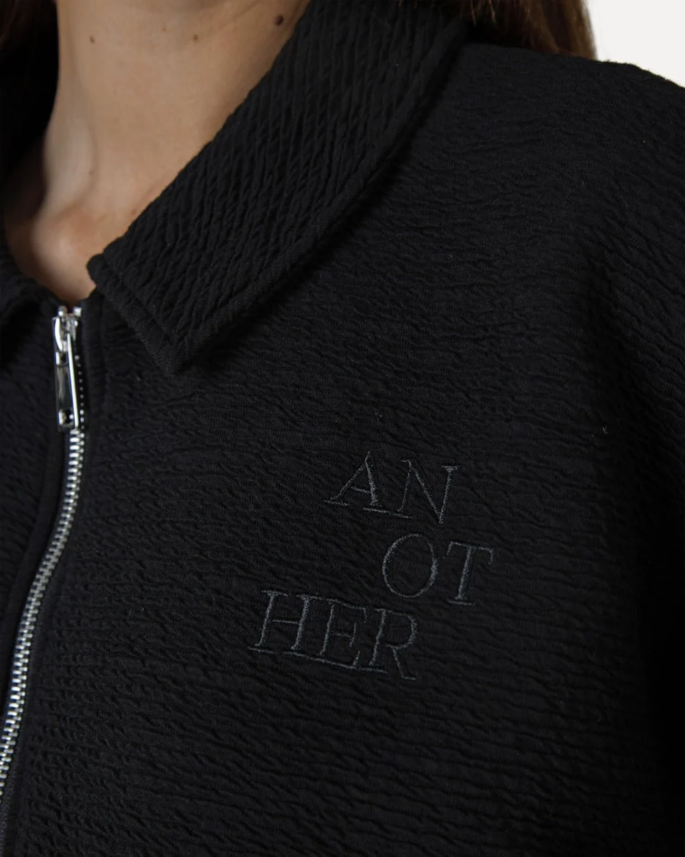 The Celina Black Jacket by Another Label is a modern bomber essential with a clean, minimal edge. Crafted from a structured stretch blend, it offers comfort and versatility for effortless everyday layering.